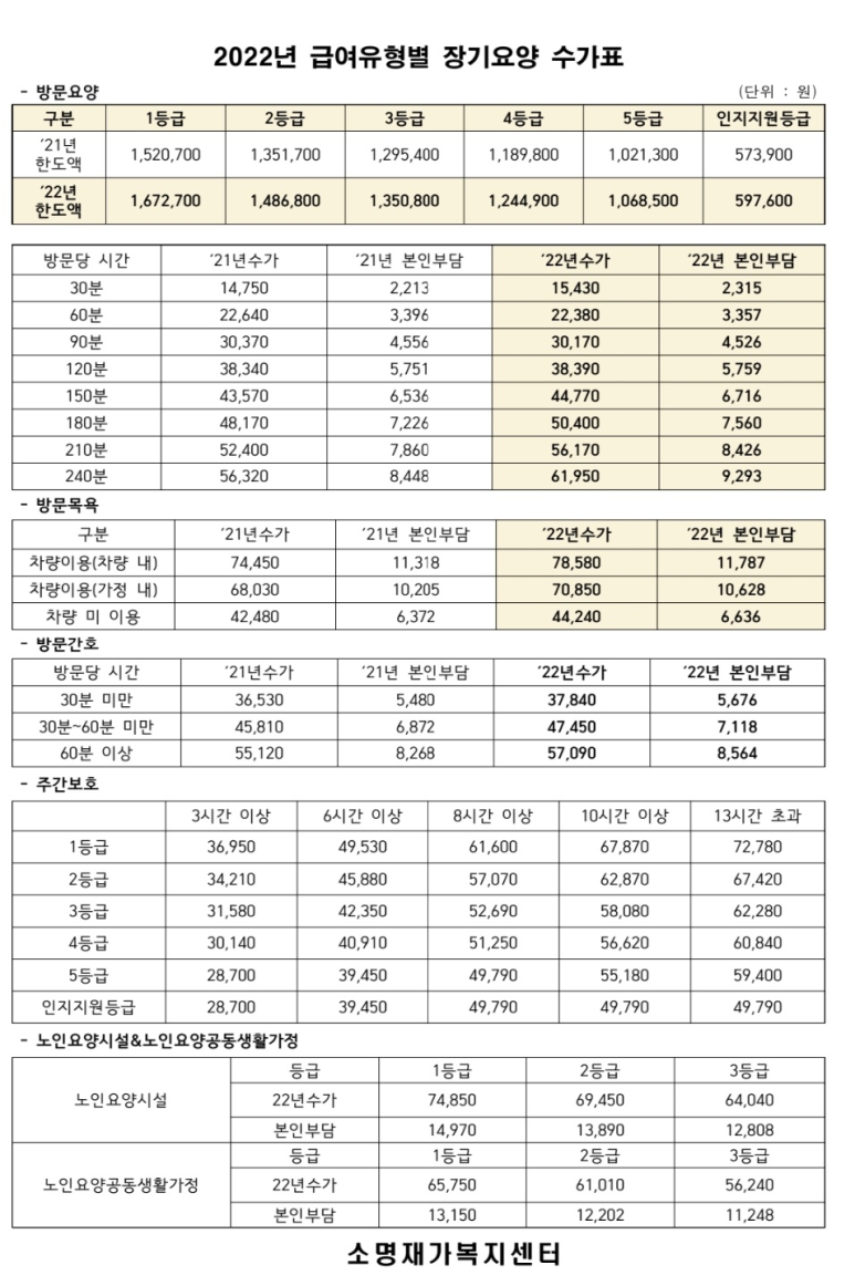 2022년 장기요양 수가 [방문 간호, 목욕] 요양보호사 시급 관련