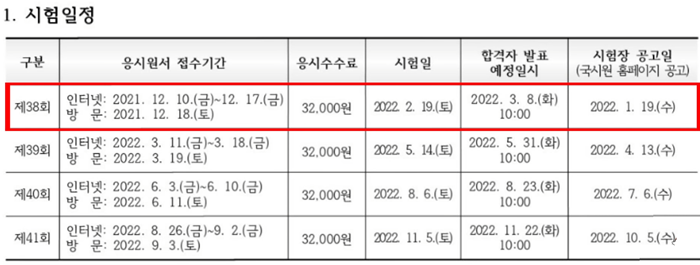 참고로 올해까지 요양보호사 자격증 시험 일정은 총 4번이 있는데요. 38회 시험은 2월 19일 토요일, 39회 시험은 5월 14일 토요일, 40회 시험은 8월 6일 토요일, 41회 시험은 11월 5일 토요일 이렇게 예정되어 있습니다.