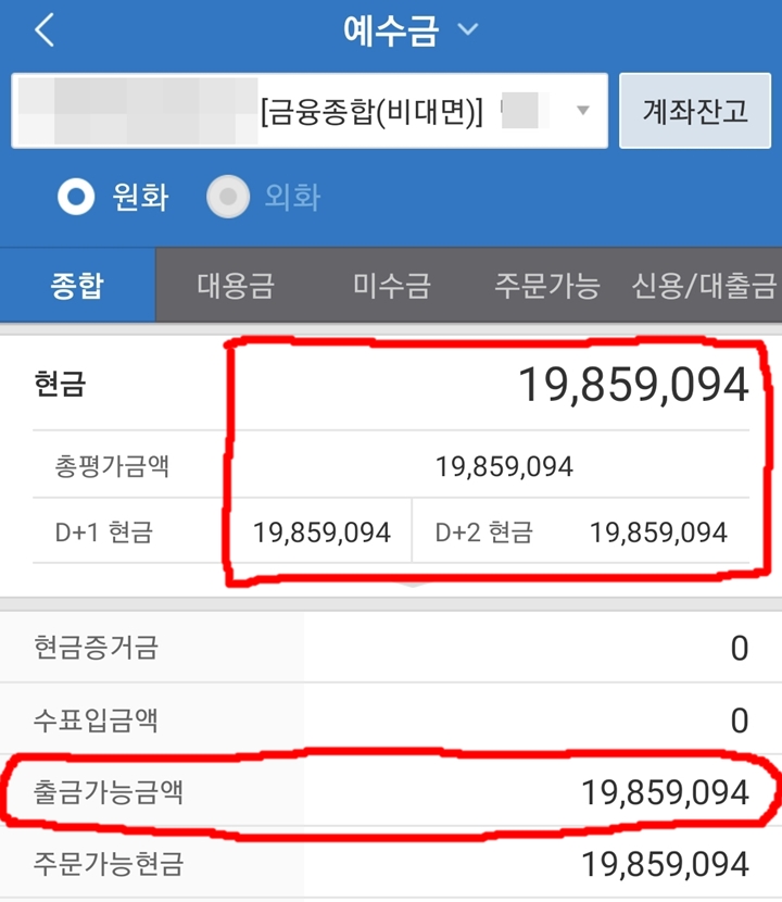 시간외 환전까지 확인했고, 환전 완료를 했다면 이제 원화 예수금을 확인할 차례입니다.