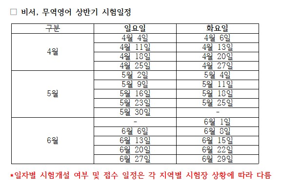 기본적으로 시험 일정은 4~6월, 9~11월 시험 기간이 정해져 있고요. 이 기간 중 화요일, 일요일 중 원하는 날에 볼 수 있습니다. 시험 일정은 상공회의소 홈페이지에서 그때그때 확인하셔야 합니다. 시험 범위는 철저하게 계약, 결제, 운송, 보험, 중재 이 다섯 개를 합친 무역실무를 중점적으로 보시면 될 것 같고 가끔 관세법이나 대외무역법에서 1~2문제가 출제되지만 무시하셔도 됩니다.