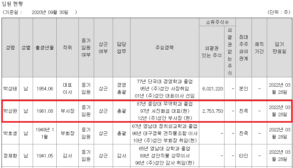 박상완이라는 부사장님께서 중앙대학교 무역학과를 졸업했다는 이슈가 부각되면서 성안이라는 종목이 굉장히 많이 올라갔습니다.