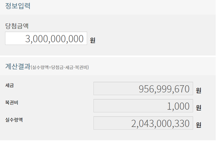 하지만, 그래도 정확한 실수령액과 세금이 얼만지 모르겠다면, 로또 세금계산기 사용하시면 됩니다.