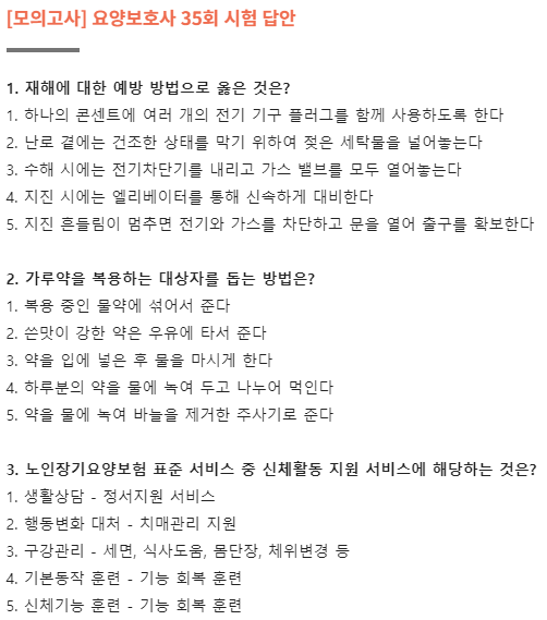 35회 요양보호사 기출문제 정답 - 시험 답안 pdf (짝수 홀수)