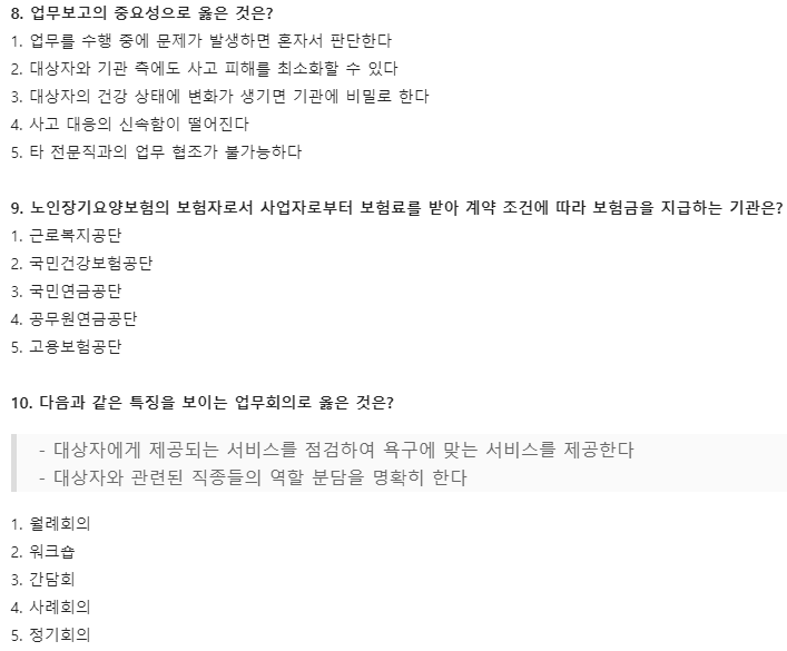 여기까지 2021년 35회 요양보호사 기출문제 대비 모의고사였습니다. 총 10개의 문제였고요.