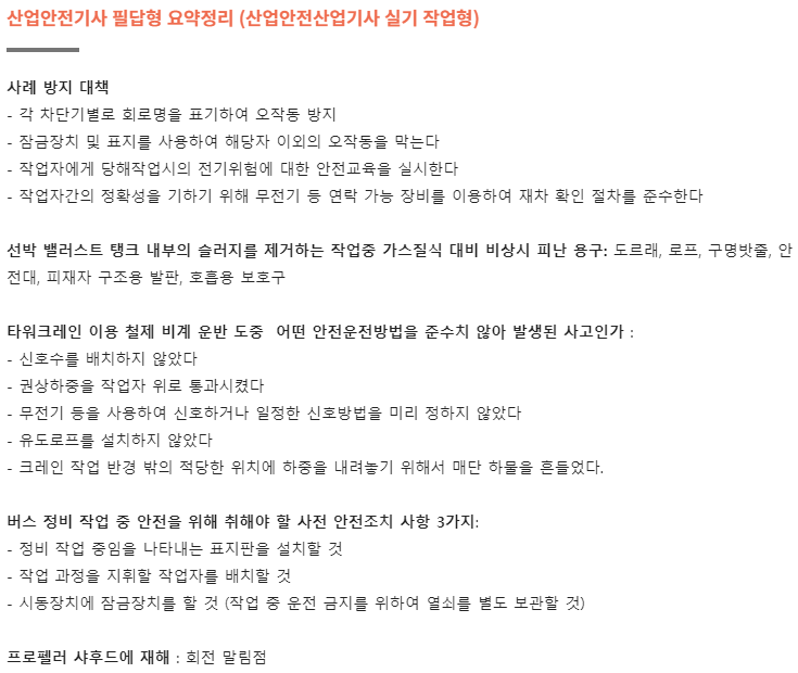 여기까지 산업안전기사 실기 작업형 필답형 강의 요점정리 파일이었습니다.