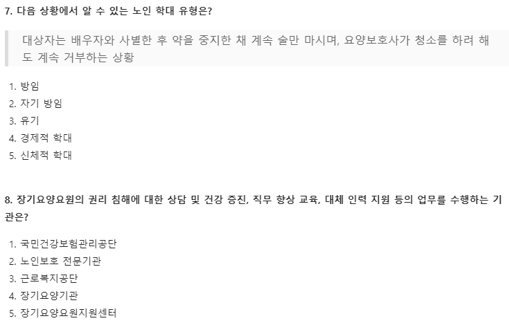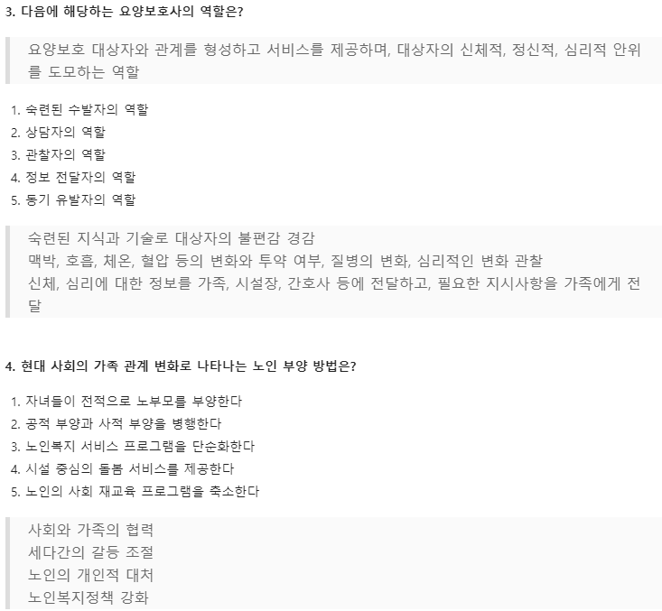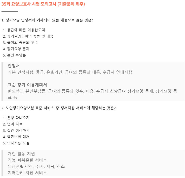 오늘은 35회 요양보호사 시험 모의고사를 소개했고요. 문제 자체는 기출문제에서 자주 나오는 것 발췌한 거라 양질의 문제였다고 생각합니다. 그리고 곧 있을 35회 시험 대비해서 더 많은 기출문제를 풀어보는 게 좋은데요. 도움이 될만한 추가 모의고사와 요양보호사 기출문제를 아래에 소개하니 꼭 함께 봐주세요. 곧 있을 35회, 36회 시험 꼭 합격하시길 바랍니다.