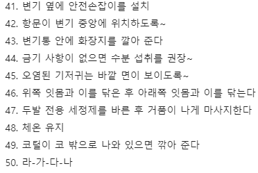 45. 오염된 기저귀는 바깥 면이 보이도록~