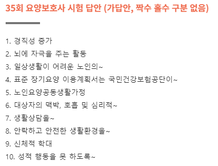 35회 요양보호사 시험 답안 (가답안, 짝수 홀수 구분 없음)