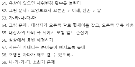 52. 그림 문제 : 요양보호사 오른손-> 어깨, 왼손-> 팔