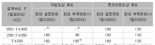 ① “설계속도”란 해당 선로를 설계할 때 기준이 되는 하한 속도를 말한다.