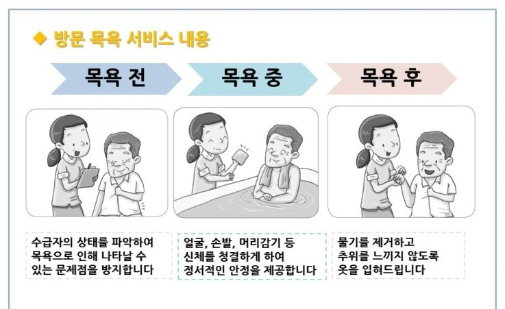 여기서 조금 모호한 업무범위가 있는데요. 바로 목욕입니다.