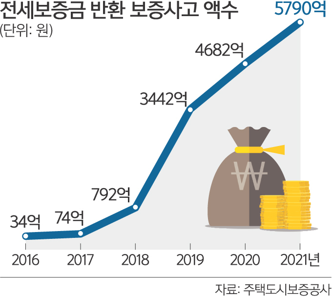 2021년 기준으로 전세보증금 반환보증 사고 금액은 5,790억원으로 허그의 실적 집계가 시작된 2015년 이후 역대 최대치를 기록하게 되었습니다. 2021년은 2020년과 비교했을 때, 전세보증금반환보증 사고액은 1,000억원 넘게 급증했습니다. 또한, 허그의 대위변제액도 2021년 처음으로 5천억원을 넘어섰습니다. 20대와 30대는 깡통전세를 더 주의해야 하는데, 악성 임대인으로 인한 피해자 중 67.6%는 2030 세대로 깡통전세 피해자 3명 중 2명은 2030 세대라는 뜻입니다.