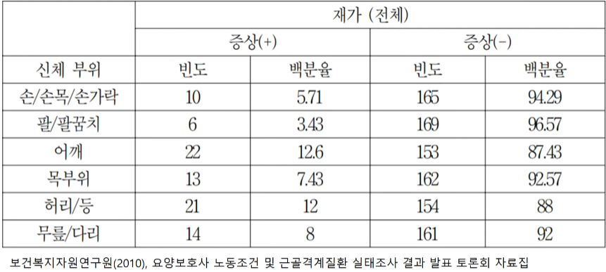 - 요양보호사 연령이 많아 개인의 노화에 의한 퇴행성 질환으로 판단하는 경우 많음
