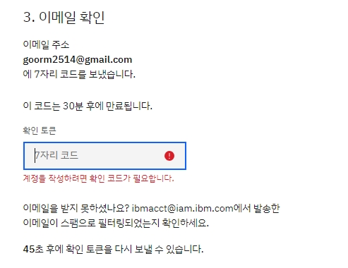 4. 정보를 다 적은 후에 완료를 누르면 작성한 이메일 주소로 7자리 코드가 발송되는데요. 이 코드를 홈페이지 화면에 입력해 줍니다.