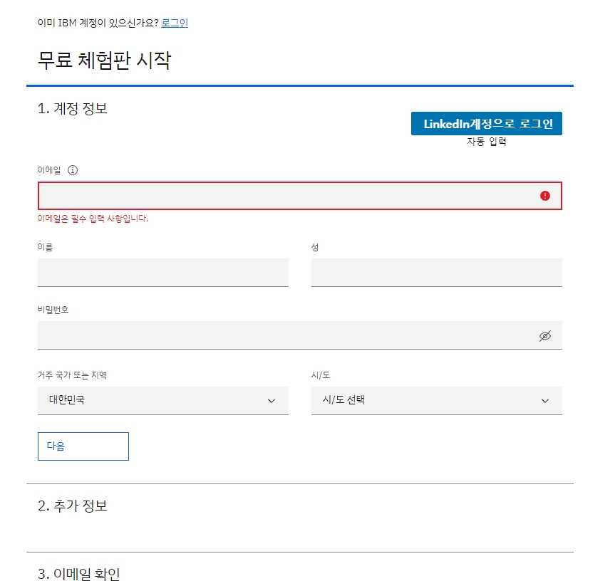 IBM 홈페이지 접속하여 회원 가입하기