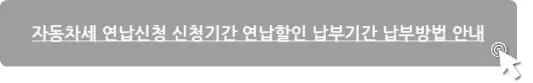 자동차세는 6월과 12월에 나누어서 납부를 하게 되지만, 연납(일괄 납부) 신청을 하게 되면 신청시기에 따라 1.3~4.6%까지 할인받을 수 있습니다. 자세하게 알아보시려면 아래 링크를 확인해주세요.