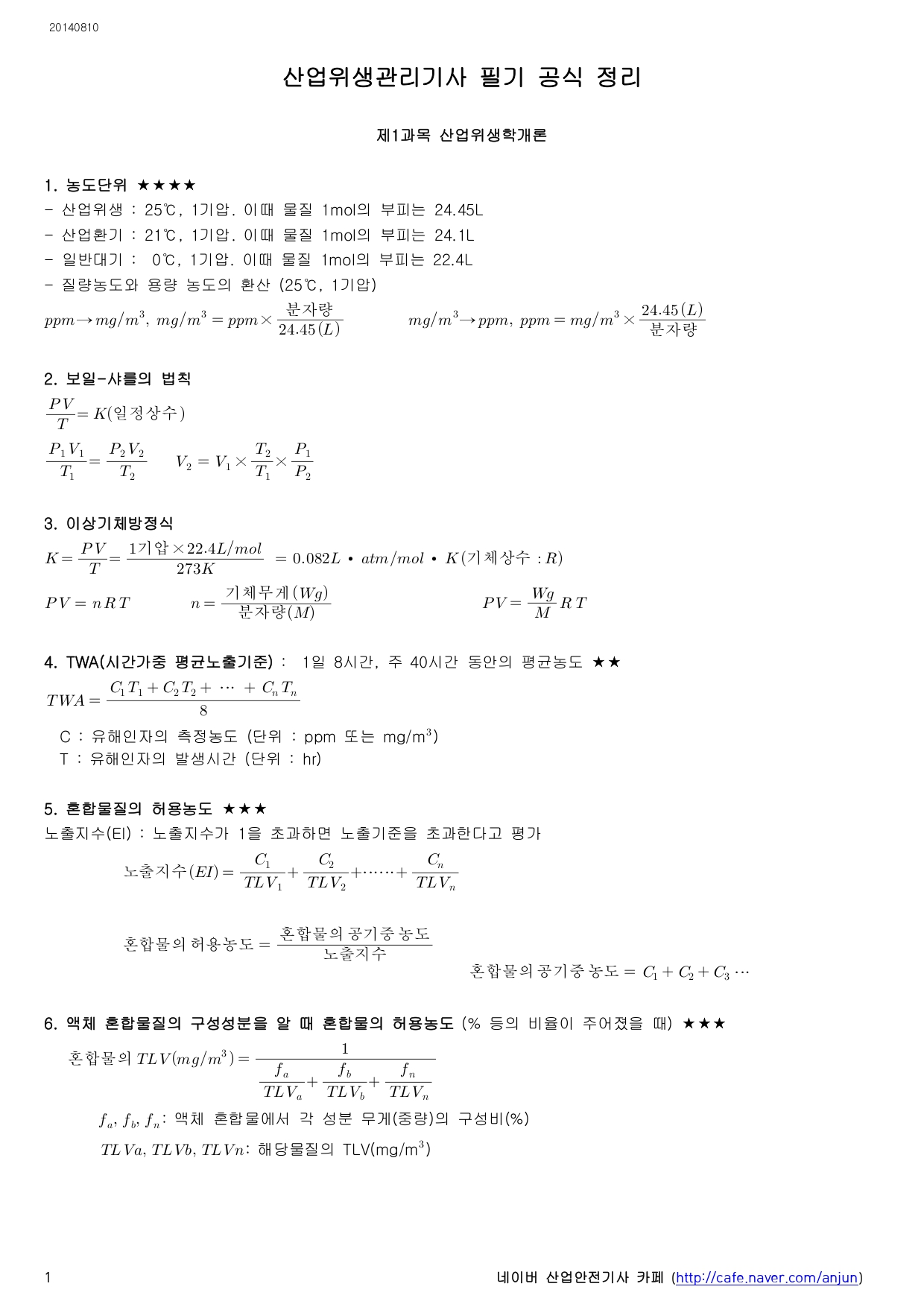 아래는 산업위생관리기사 필기 공식 정리된 pdf 파일 내용이고요. pdf 파일 다운로드는 글 맨 아래에서 가능하십니다. 우선, 내용을 먼저 보시고 마음에 들면 글 맨 아래에서 pdf 파일 다운로드해주세요.