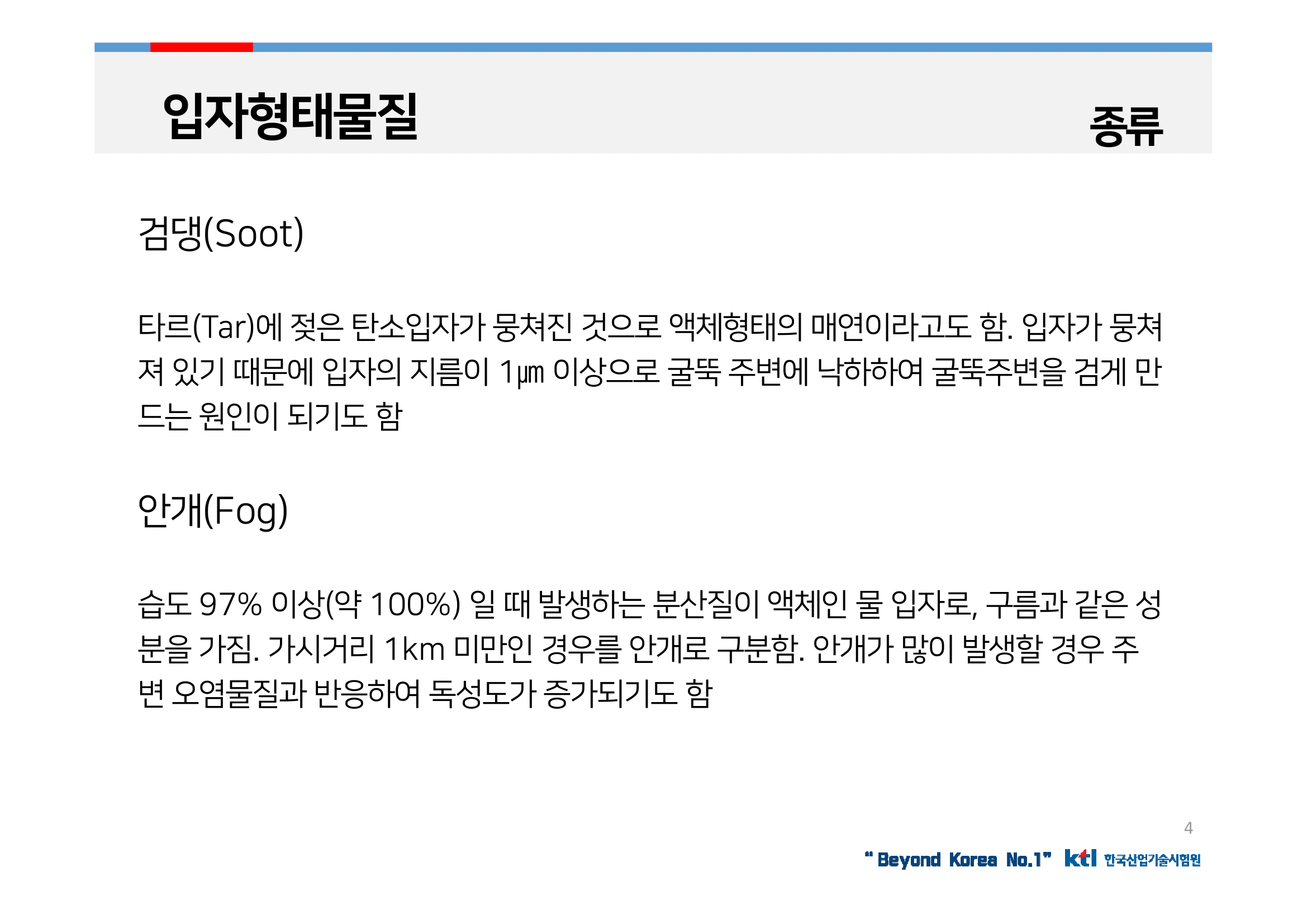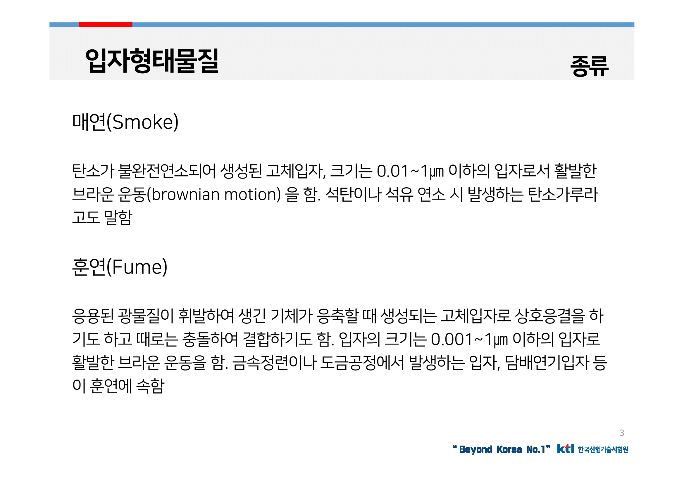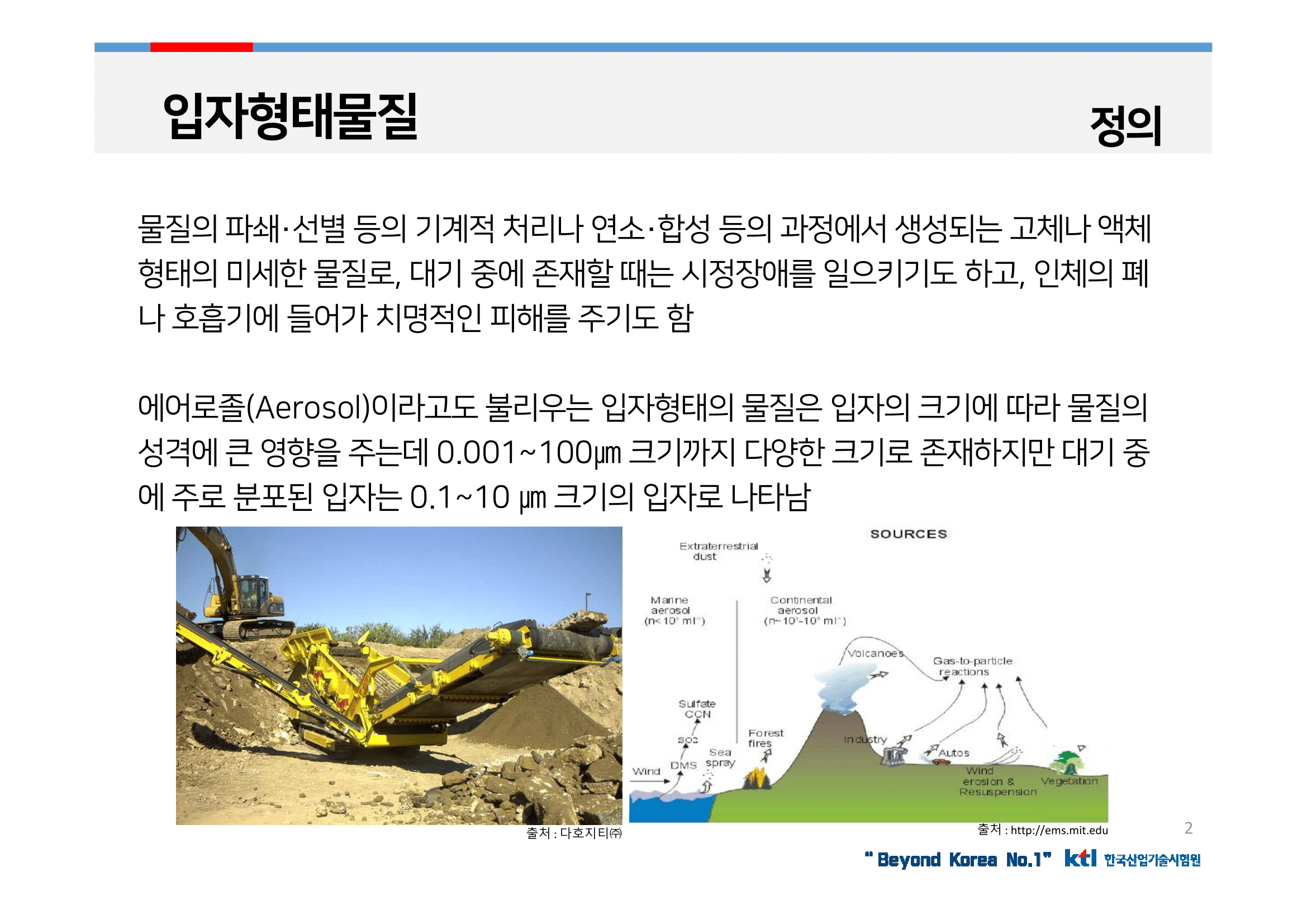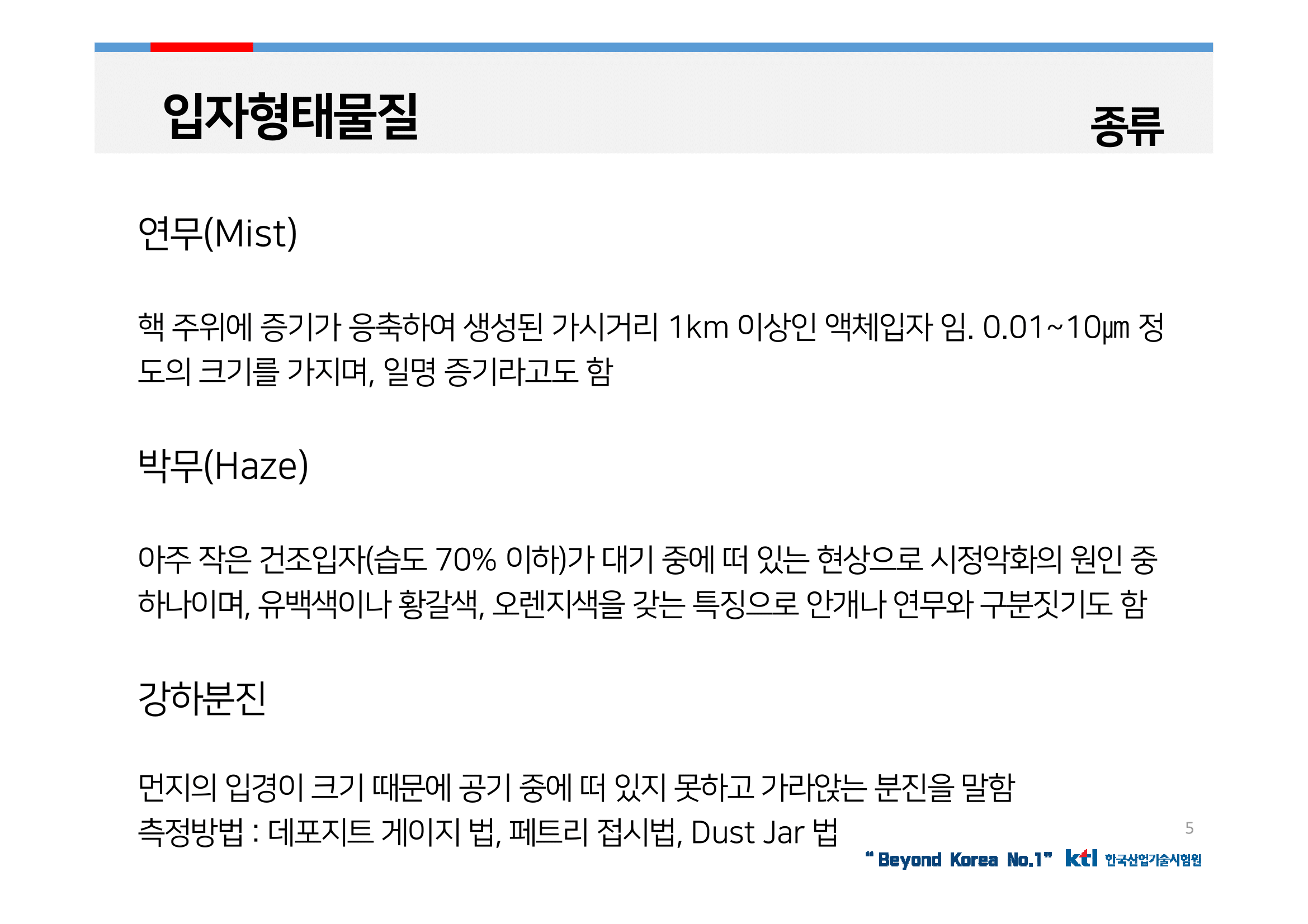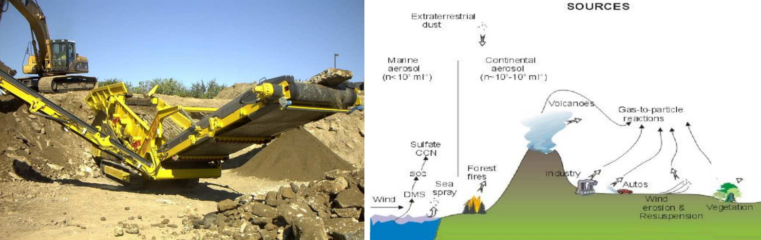 에어로졸(Aerosol)이라고도 불리는 입자 형태의 물질은 입자의 크기에 따라 물질의 성격에 큰 영향을 주는데 0.001~100㎛ 크기까지 다양한 크기로 존재하지만 대기 중에 주로 분포된 입자는 0.1~10 ㎛ 크기의 입자로 나타남.