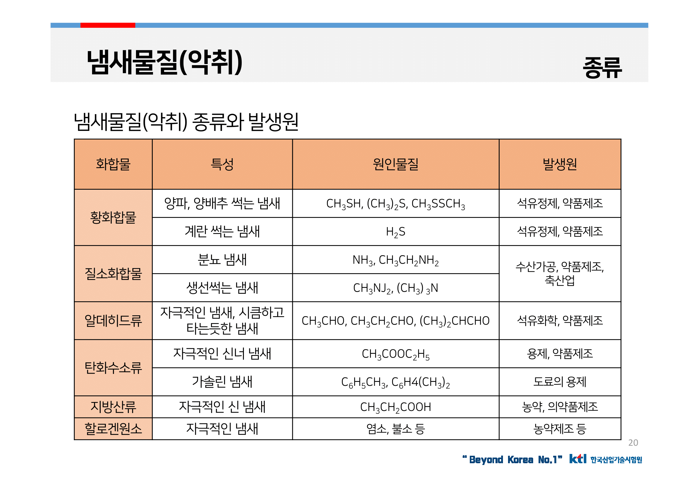 특별한 물질에 접촉할 때 일어날 수 있는 화학적인 반응물으로 악취에 의한 불쾌감은 일정한 기준이나 측정방법으로 정량적인 표시를 하기 어려움.