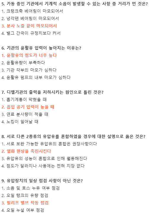 5. 가동 중인 기관에서 기계적 소음이 발생할 수 있는 사항 중 거리가 먼 것은?