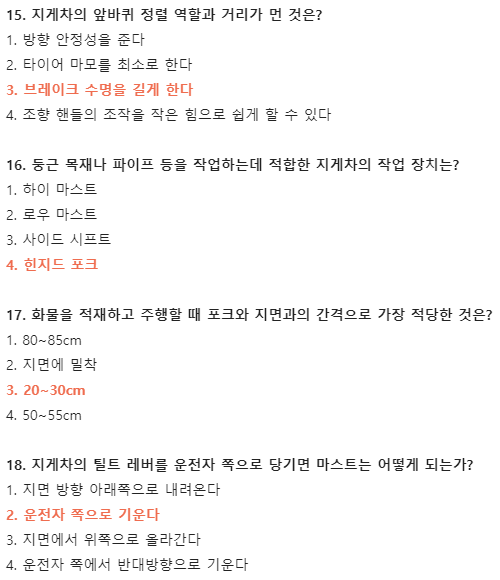 [[#1] 지게차 핵심 필기 모의고사 1번. 공부할 시간 없으신 분들 보세요!]