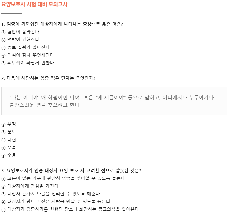 여기까지 요양보호사 기출문제 모의고사 문제였고요.