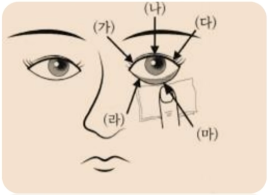 4. 아래의 그림 중 안약을 투여할 때 올바른 위치는?
