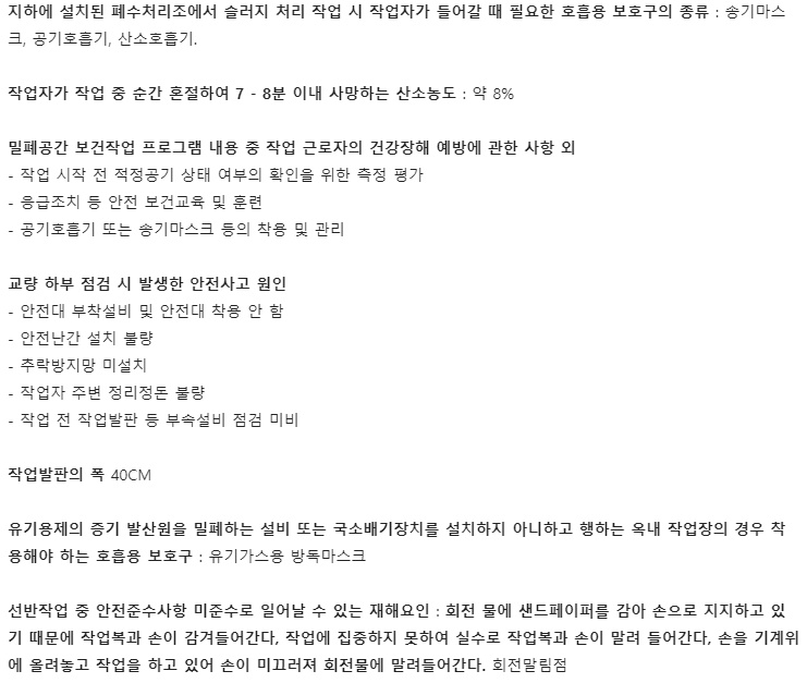 - 기타 안전 보건에 관련된 사항