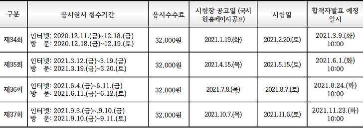 2020년 올해 마지막 시험이 오늘 11월 7일에 치러졌습니다. 올해 마지막 시험이므로 모두 합격하셨으면 좋겠지만 안타깝게도 불합격하셨다면 내년 34회부터 다시 준비하셔야 합니다. 오늘은 33회
