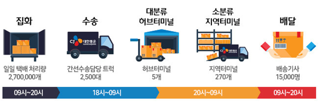 이렇게 택배는 보이지 않는 다양한 프로세스를 거쳐 우리에게 전달되고 있습니다.