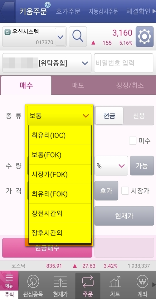 2. 급하게 매수, 매도할 때는 시장가로 주문