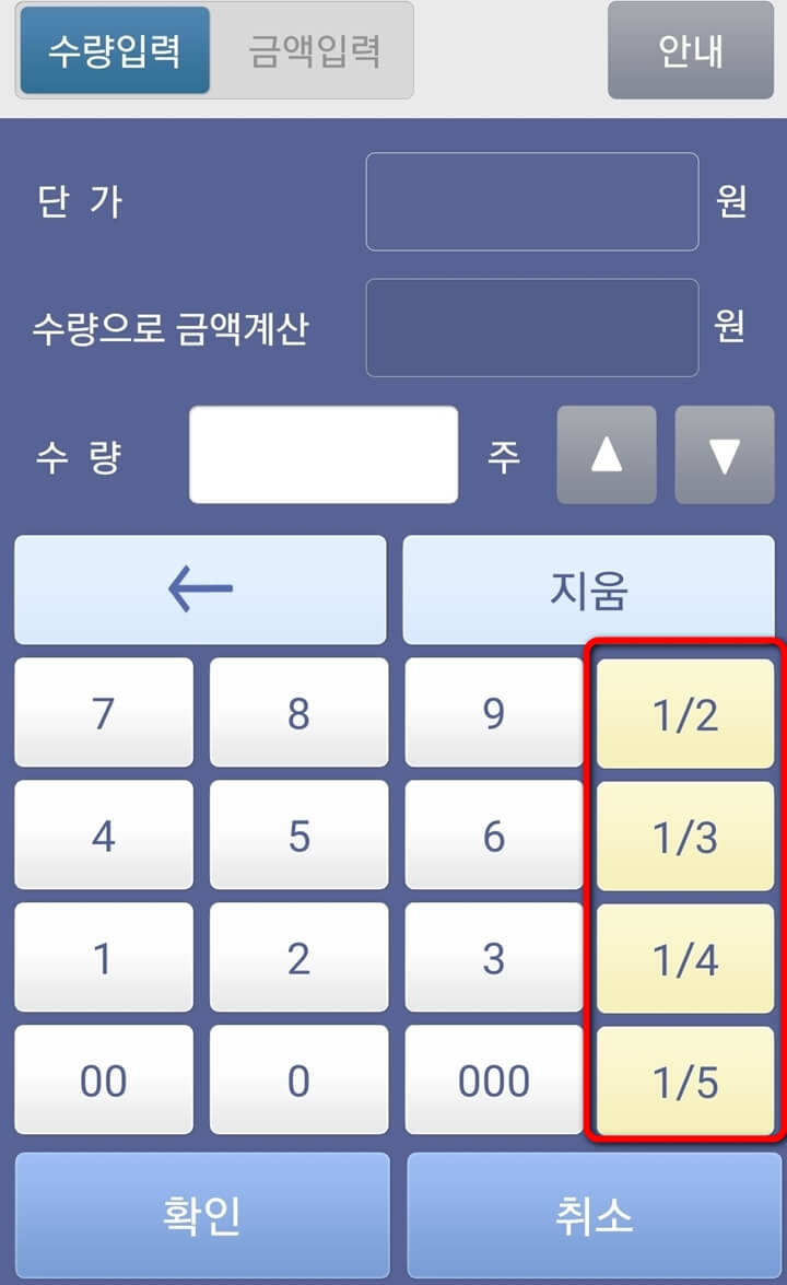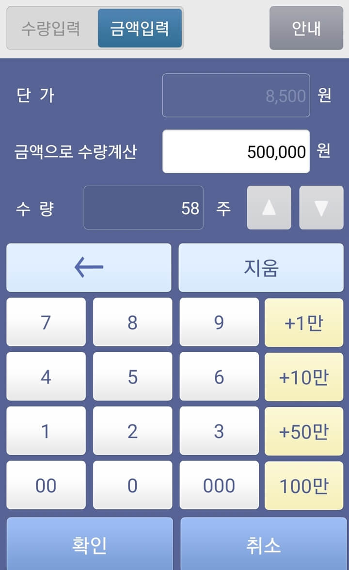 위 화면에서 수량을 선택하고 수량 화면에서 금액 입력을 선택하세요.