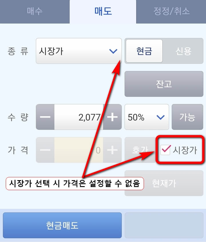 시장가는 다들 아시다시피 즉시, 최우선가로 매수할 수 있는 방법인데요. 보통가로 매수하시든 시장가로 매수하시든 종류 탭에서 하나를 꼭 선택하시고요.