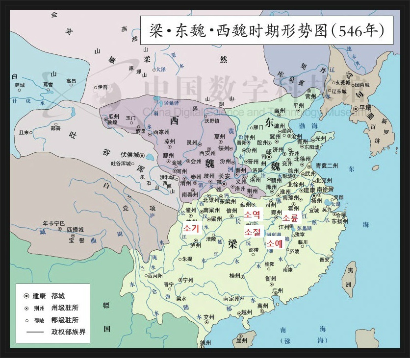 위진남북조 중기 - 양원제 승성 2년(553) 10월, 왕승변은 건강, 진패선은 경구에 주둔케 했다.