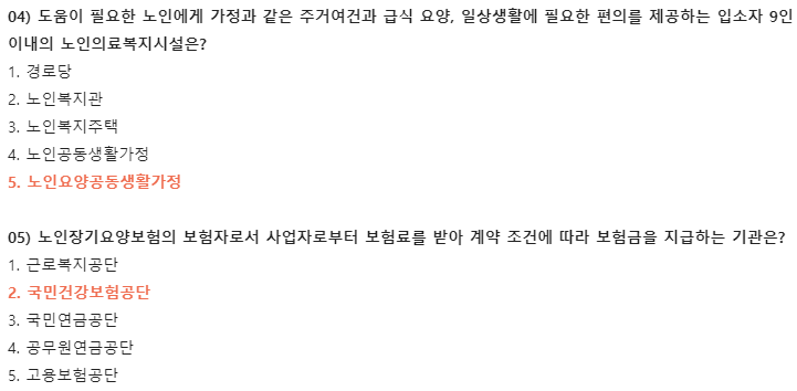 04) 도움이 필요한 노인에게 가정과 같은 주거여건과 급식 요양, 일상생활에 필요한 편의를 제공하는 입소자 9인 이내의 노인의료복지시설은?