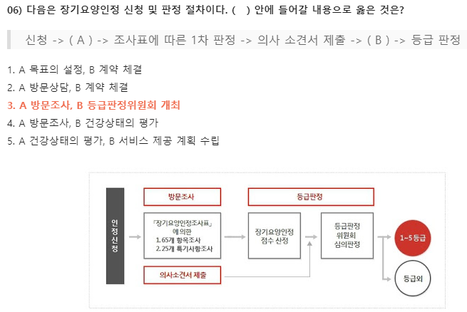 06) 다음은 장기요양인정 신청 및 판정 절차이다. ( ) 안에 들어갈 내용으로 옳은 것은?