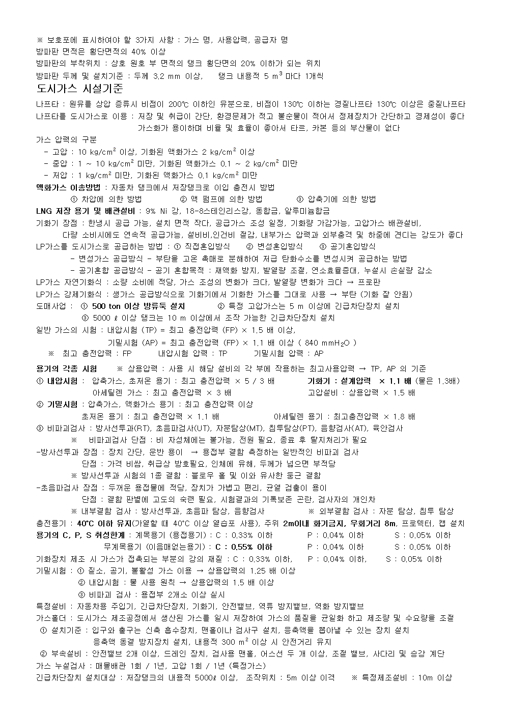 가스기능장 실기 요점 정리 hwp, pdf - 필수 암기 항목