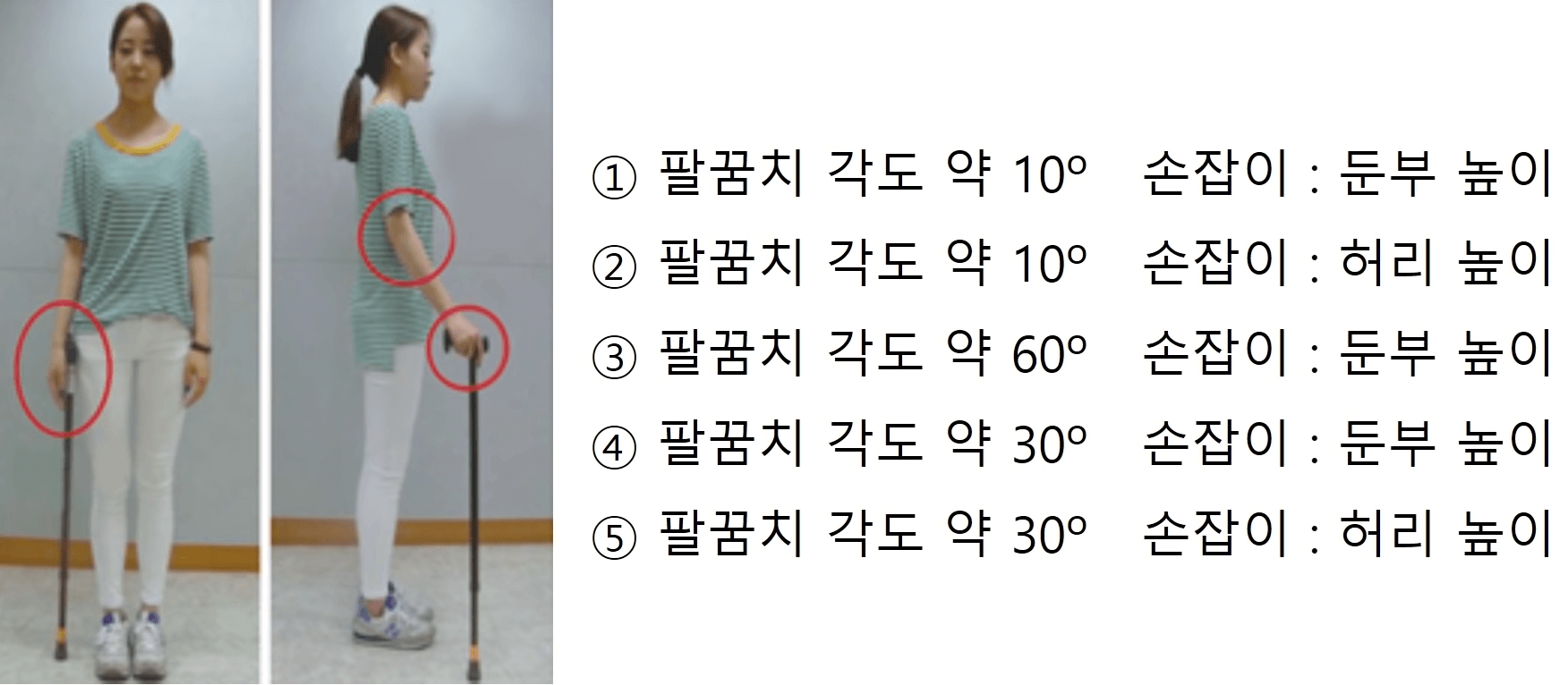 8. 지팡이 길이를 결정하는 방법으로 옳은 것은?
