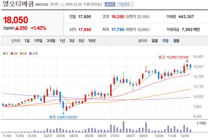 시가 (2020.12.24 기준) : 18,050원