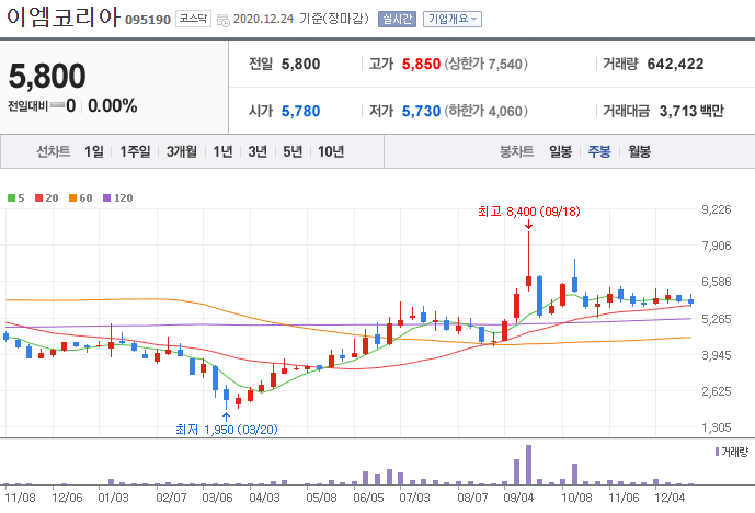 시가 (2020.12.24 기준) : 5,800원