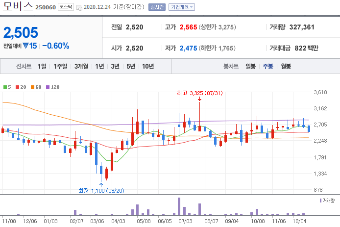 시가 (2020.12.24 기준) : 2,505원
