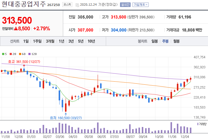 시가 (2020.12.24 기준) : 313,500원